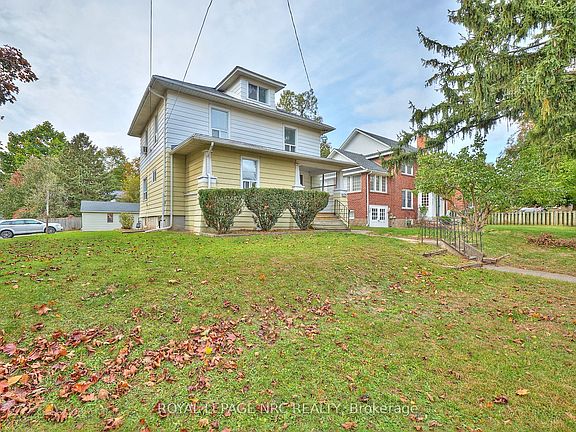 Excellent Investment Opportunity in the Heart of Niagara Falls! Welcome to this spacious and versatile LEGAL DUPLEX + IN-LAW SUITE, offering over 2400 sq. ft. of finished living space. Situated on a large corner lot in a mature, character-filled Niagara Falls neighborhood, this property is ideal for investors or multigenerational families seeking flexibility and income potential. The main floor unit is VACANT and features 2 bedrooms, 1 bathroom, and a beautifully updated kitchen with quartz countertops. The upper unit also offers 2 bedrooms and 1 bathroom, providing a bright and comfortable living space. The finished basement includes a 1-bedroom in-law apartment with its own separate entrance and private kitchen, making it perfect for extended family or rental income. There are three kitchens and three full bathrooms in total, plus a shared laundry room on the lower level for added convenience. Outside, you'll find a large 1.5-car detached garage, a garden shed, and plenty of yard space with the potential to add an ADU (this property falls within zoning for ADU) or secondary dwelling unit (buyer to verify with the city).Located just minutes from Niagara Falls, the Casino, tourist attractions, Niagara Parks and the Parkway trails & gardens, as well as Costco, shopping, amenities, and the QEW-and only a short drive to the new hospital currently under construction-this property combines convenience, income potential, and future growth. Whether you're looking to live in one unit and rent the others or add a strong asset to your investment portfolio, this property is a must-see!