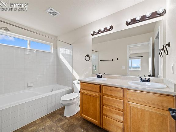 Nestled amidst the beauty of Colorado Springs, this homes offers an unparalleled living experience. With a covered front porch welcoming you as you enter the main level of the home, where vaulted ceilings and a spacious kitchen create an inviting atmosphere. The expansive granite counter bar and attached dining room area overlook the lower level, providing a seamless flow for entertaining guests.? Make your way upstairs to discover the private primary bedroom, featuring an en suite bathroom and a large walk-in closet for added comfort and luxury. Two additional bedrooms and a full bath ensure ample space for guests.? The lower level includes a large living room with a 3-panel sliding glass door leading to the fenced backyard, adorned with unobstructed views of the mountain range and the open space, perfect for outdoor gatherings. A half bath, garage access, and an oversized laundry room complete this level, adding convenience to daily life.?Downstairs, the unfinished basement offers the perfect opportunity to customize and add additional living space to suit your needs. ? This beautiful home encompasses 3 bedrooms, 3 bathrooms, and a 3-car tandem finished garage, providing plenty of room for vehicles and storage. ?Enjoy modern amenities such as granite countertops, hardwood and laminate flooring, stainless steel appliances, and ceiling fans throughout.? Outside, automatic sprinklers maintain the lush landscaping, while a concrete back patio offers a serene retreat to enjoy the picturesque views of the Front Range. With its proximity to Fort Carson, Peterson AFB, Schriever AFB, COS airport, and the Powers Corridor, you'll have easy access to shopping, restaurants, and entertainment options. Don't miss the opportunity to make this your own slice of Colorado paradise. Schedule your showing today before this gem is gone!