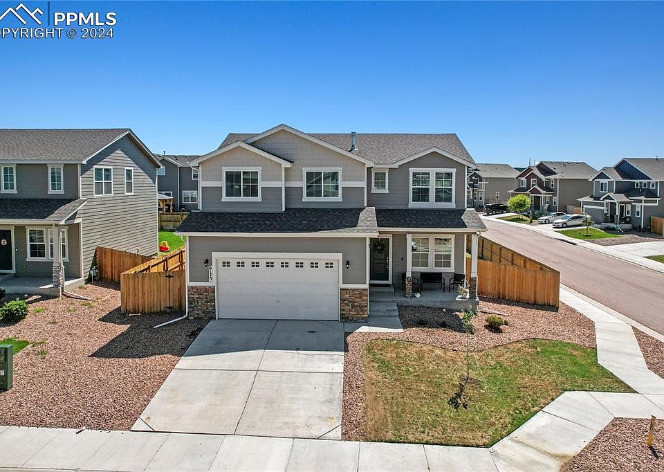 Welcome home to the highly sought after Lorson Ranch neighborhood! Situated on a larger corner lot, this 4 bedroom, 3 bathroom home has all the extras: an unfinished basement to make your own, quartz countertops throughout, an office/flex space on the main living level, an open floor plan, and cozy loft on the second level. The kitchen is a standout with 42" upper cabinets, a gas stovetop, top of the line refrigerator and luxury vinyl planking. The owner's suite boasts a ceiling fan, an ensuite 5-piece bath with toiletry closet, and a roomy walk-in closet! The upper level also includes 3 additional spacious bedrooms as well as a full bath with Jack and Jill sinks. The unfinished basement is roughed-in for a bathroom addition, if expanding the living space is on your list of wants! Within steps of the community school, parks, trails, and military installations, this home is your opportunity to own a piece of Colorado at a phenomenal price.