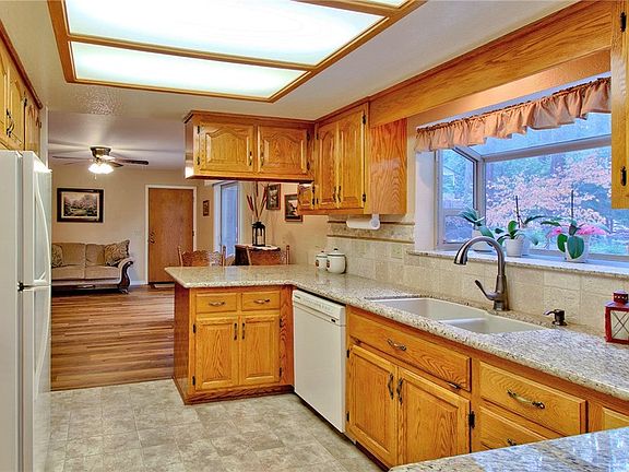 GORGEOUS 3 BEDROOM, 3 BATHROOM HOME WITH BONUS ROOM IN TRANQUIL NEIGHBORHOOD! This custom built one owner home features a double lot, attached 2 car garage with a drive thru door in the back and an insulated workshop upstairs! This workshop has skylights, work benches, plenty of storage with a sink! Step into the updated kitchen offering ample counter space, pantry, cabinets galore, breakfast bar & garden window. Spacious living room opens up to the dining room. Separate cozy family room with a wood burning stove. Bonus room that can be used as an office or bedroom has a ceiling fan. Head upstairs and you will find beautiful soaring wood beamed ceilings in the bedrooms. Expansive master suite featuring ceiling fan, large walk-in closet, soaking tub, dual vanity and shower. The spacious second and third bedrooms feature ceiling fans and the third bedroom offers a unique built-in cabinet. The second bathroom offers a tub/shower combo. "The West Wing" which is the additional detached 3 car garage 28X38 provides plenty of room for all the toys completely insulated with storage in attic! Extra long driveway which offers RV parking. This home also offers: newer HVAC, newer downstairs flooring, triple pane windows with newer blinds, wired for a generator, whole house fan & more! This home has so many amazing touches that you can't even see them all such as laundry room has extra insulation between walls & floors. Beautiful yard offering fenced backyard & multiple fruit trees.