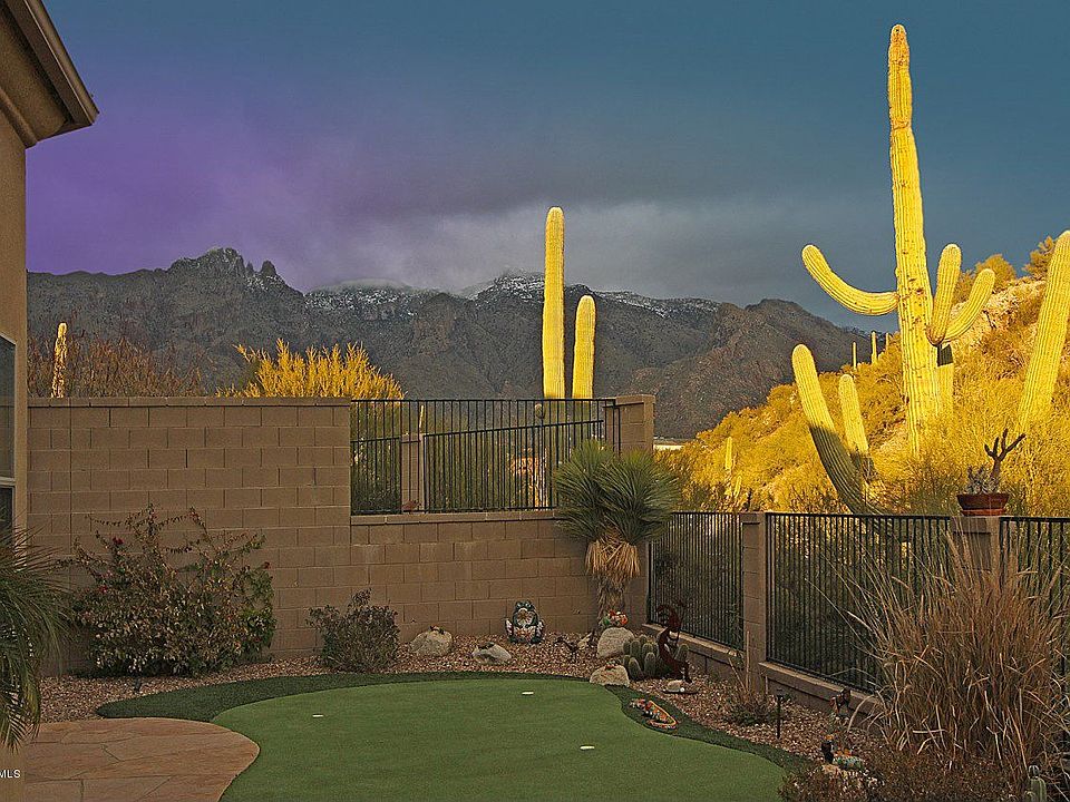 For more information on this property, contact the Listing Agent, Pam Treece at (520) 918-7462 or pam@pamtreece.com. Tucson Assoc. of Realtors Home Tour WINNER! Enjoy the privacy and Catalina Mountain Views this beautiful 2,659 SF, three bedroom plus den offers in the desirable Villages at La Paloma gated community. Features include tasteful Great Room with fireplace and surround sound, cook's kitchen with an abundance of cabinets, counter space and pantry, breakfast nook, split bedroom floor plan, home office with custom built-ins, Master Bedroom overlooks serene arroyo has His & Hers closets, double vanities, walk-in shower. Outdoor living at its finest with flagstone patio and putting green with a backdrop of numerous saguaros and Catalina Mtns. Additional amenities include Alder Wood Doors, 3 car garage, Security System Pre-Wire, Decor Painting, Community Pool & Spa and much more.