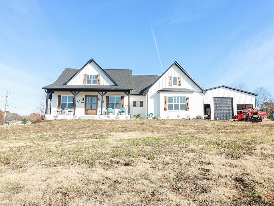 Custom home that is better than new and MOVE IN READY. This home features over $200,000 in upgrades: custom blinds, hardwood floors throughout, 40' 4" by 60'4" shop/ detached garage. Inside features an open entryway with cathedral ceilings, wood beams on vaulted ceilings in living room, xlarge pantry off the kitchen. All bedrooms on the main level with large bonus room above the attached garage