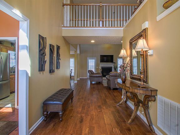 Open floor plan to 2nd floor on 1/2 acre level/fenced yard backing to woods. Master suite on main level with whirlpool, separate shower, dual vanities in both baths. Huge bonus room with lots of windows. Fire pit and several separate areas in back yard. Wonderful patio for entertaining. All brick/2 car garage. Gas fireplace, landscaping, long/wide drive with turn around.
