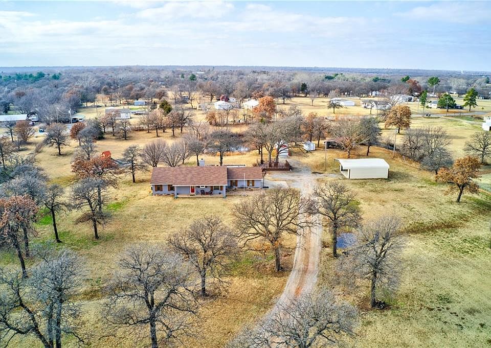 100% USDA Financing!!! Lovely comfortable home set way back off road with a great view of the colorful sunrises! Huge screened in patio on back of home and large open deck, both have a great view of the pond where you can fish and relax! Have friends and relatives come over for outdoor cookouts! Updates include granite counters, stainless appliances + stainless kitchen Farm sink, Subway tile backsplash; white kitchen cabinets; light fixtures, wood look tile flooring and modern paint color. All rooms large, including master bedroom with large walk in closet. Fireplace has a blower. Hall bath opens to 2nd bedroom. 8-12 person in-grd storm shelter; extra well for yard. 20 x 20 carport; 20 x 30 shop with electric; 12x24 storage bldg.; 20 x 24 bldg. Located 1/2 mile from Eastern Ok Vo-Tech; approx. 3 miles from Walmart and Braums; Little Caesars, Pizza Hut, Subway, McDonalds, Starbucks, Dollar Tree, CVS and Dollar General, and the new 3 story hotel under construction.