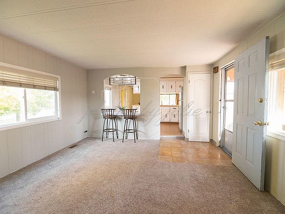 Tranquility in the country, a small mobile home park like no other. This 2 bed 1 bath home is so well planned with lots of updates. The Kitchen has wood laminate flooring and a open concept with a breakfast bar, Dining room and a pass though window to the living room. All vinyl windows washer and dryer hookup. Built in vanities in the bedrooms with fresh carpet. Tile floors and storage in the bathroom with a nice tub/shower combo. A fantastic covered deck off the living room Space rent includes landscape maintenance, water, garbage and sewer.