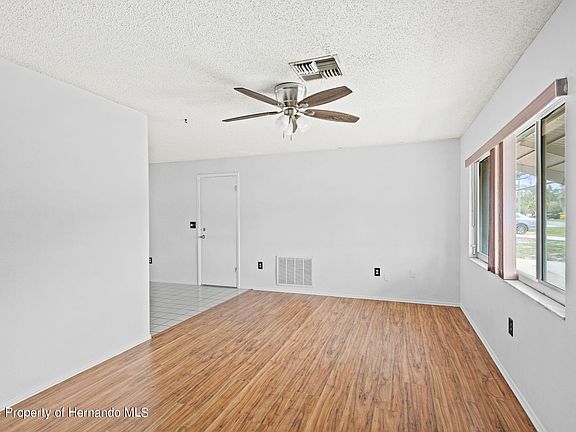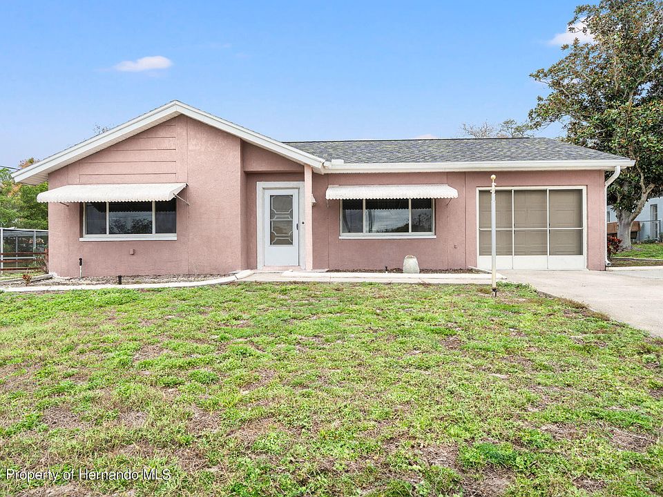 SPRING HILL HOME WITH NEW ROOF installed in 2023 and a large lanai overlooking the fenced backyard. This 2-bedroom home features a BONUS ROOM with a private bathroom, providing an excellent option for a 3RD BEDROOM, home office, or second living area. Parking is a breeze with an extra-long and wide driveway, in addition to the convenience of an ATTACHED GARAGE equipped with a garage door opener. Step inside to the roomy living area, featuring a large window that floods the space with natural light and laminate wood flooring for effortless maintenance. The kitchen serves as the heart of this home, featuring light neutral cabinets and a window over the sink that offers a view of the backyard. Nestled towards the rear of the home, you'll find the bonus room complete with a full bathroom and closet, offering a versatile space suitable for a potential third bedroom. Both bedrooms are spacious and share another full bathroom. The perfect complement to this home, the 12'x26' COVERED LANAI provides an ideal space for outdoor dining and relaxation. The FENCED BACKYARD provides the ideal space for pets to play. Newer hot water heater. Conveniently located less than 5 minutes from Publix and many shopping and dining options. NO HOA OR CDD AND NO FLOOD ZONE. The Suncoast Parkway entrance, only 10 minutes away, provides easy access to Tampa Airport in just 40 minutes, or you can explore the museums and activities in the city. A quick hour and 45 minute drive puts you in Orlando to experience the thrill of all the theme parks. For nature enthusiasts, Weeki Wachee Springs, Roger's Park, and Pine Island, known for spectacular sunsets, are a short drive away. WILL NOT LAST! Call today for your private showing.