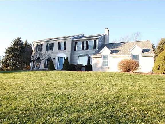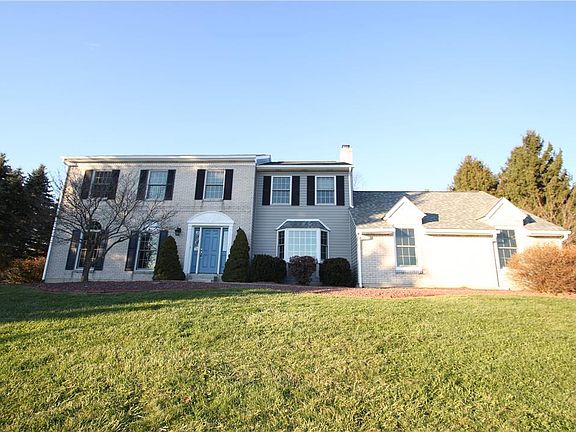 Lovely 4 bedroom colonial perched on 1 1/2 acres in Southern Lehigh SD. This impeccable home with spectacular views of the valley below and surrounding farmland is move-in ready with many updates throughout. The large kitchen is the hub of the home and is complete with brand new beautiful hardwood flooring and granite countertops. The hardwood floors continue throughout the first floor including the living room, dining room, and very spacious family room. The family room is centered around a cozy gas fireplace. The first floor has a beautiful half bath and conveniently located laundry. The second story has four spacious bedrooms, recently updated bathrooms, and spacious closets in the master and throughout. The basement is partially finished with plenty of room for storage. The private backyard is fenced in with an in ground pool perfect for hours of entertainment in those summer months. Many updates throughout including new air conditioner, new siding, new roof, and much more!