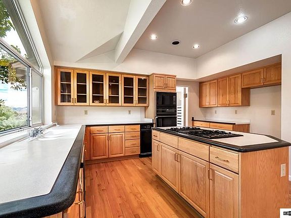 Gated Five Bedroom South-West Reno Beauty overlooking the 11th green on the Established Lakeridge Golf Course. Inside attributes encompass hardwood floors, colossal vaulted ceilings, gas log fireplace and a huge walk out basement. Abundant amount of windows and sky lights which allow heaps of natural sunlight. Entertain your guests with the extravagant kitchen, dining and main living area which leads out to the deck! Enjoy the upstairs deck or downstairs covered patio with golf course views, city lights and