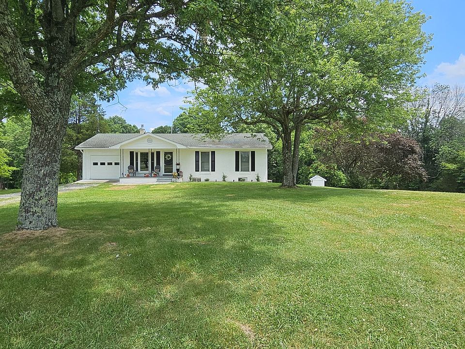 Peaceful and private country living on 4.5 acers, close to town. Home is a 3 bedroom, 2 bath, all brick house with a 1 car attached garage. Newly painted exterior and interior, new light fixtures, new$2,500, 250 gallon propane tank, no carpet, covered patio in front and back, extra-large 30x12 deck, Barn is 24x24, shop has electric, heat and cooling, it is 28x24, shed at back of property is 40x24. Lots of possibilites. There is also a pond on the property. Property is on well water but city water is available at the street. House has a wood stove that can heat entire house if propane is not desired, making this home a possible off grid property. A $1,400 pest control/ preventative treatment has been done by US Pest, New range/oven, new fenced area for animals behind barn, refrigerators, washer and dryer are included. High speed fiber optic internet available. Great home to make it yours, on a beautiful property.