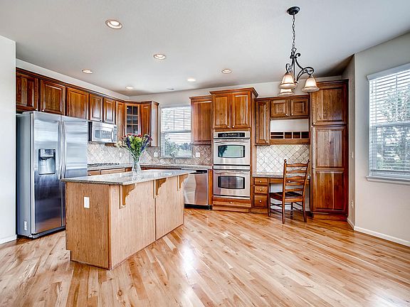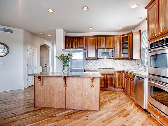 Immaculate Maher Ranch 2 Story w/ 3 Car Garage in Cul-De-Sac next to Gemstone Park! Gourmet Kitchen Features: Bosch French Door Refrigerator, Stainless Steel GE Profile Gas Cook Top, Double Oven, & Microwave. Arctic White Quartz Slab Counters & Spacious Island, Dove Gray Shaker Style Island Cabinetry, Subway Tile Herringbone Backsplash, Modern Pendant Lighting, 42" Cherry Cabinetry w/ Crown Molding & Built-In Pantry. Other Updates Include Light Cherry Diagonal Laid Hardwood Floors on Main and Upper Floor as well, Wrought Iron Spindle Banister, Newer Paint, Patterned Low Profile Carpet, Modern Glass Lighting Throughout, Main Floor Study w/ Glass French Doors. 5 Piece Master Suite w/ Spacious Walk-In Closet & Updated Lighting Ring Security and Doorbell System included. Radon Mitigation System in Full Basement w/ Plenty of room to grow. Backyard has Trex Deck w/ Canopy for Shade & Plenty of Grass Area with .28 Acres. Views of Open Space & Gemstone Park. Phenomenal Douglas County Schools, Castle Rock Outlets Nearby, and Plenty of Great Places to Eat. Phillip S Miller Park & Zachary Parrish Park also Close By.