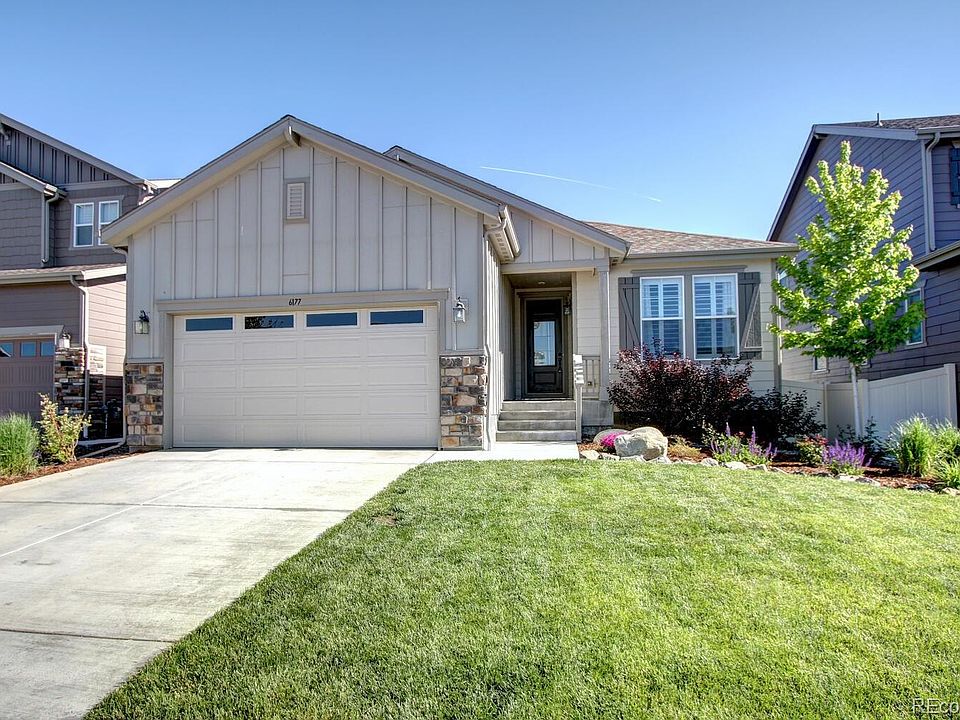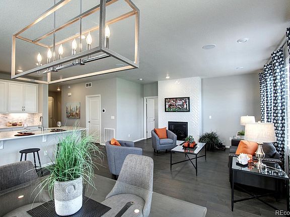 Introducing the epitome of luxurious living nestled in the heart of Stone Creek Ranch: the crown jewel of the community, the former model home that exudes elegance and comfort at every turn. Boasting a spacious layout with 4 bedrooms and 3 bathrooms, this ranch-style abode offers unobstructed vistas from the backyard, showcasing the serene beauty of Cherry Creek Open Space that is due to not be built. Step inside to be greeted by airy 9' ceilings, leading to a primary suite that redefines relaxation with its walk-in closet and en-suite featuring double sinks. The kitchen is a chef's dream, adorned with granite countertops, an island, and 42" Timberlake Tahoe cabinets, complemented by a gas stove for culinary adventures. A den at the front of the home provides the perfect space for work or leisure, while the convenience of main-level laundry adds to the ease of living. Descend to the sprawling finished basement, complete with a vast living area, a bedroom with egress window, and a guest bathroom, offering endless possibilities for entertainment and relaxation. Additional features include a radon mitigation system, humidifier, and a gas line for barbecue, all added post-builder for utmost convenience. With Energy Star certification, this home not only embodies luxury but also prioritizes efficiency and sustainability. Don't miss the opportunity to make this unparalleled residence your own sanctuary in Stone Creek Ranch.