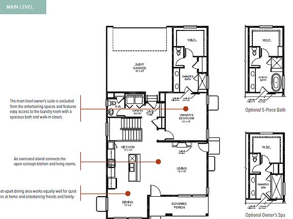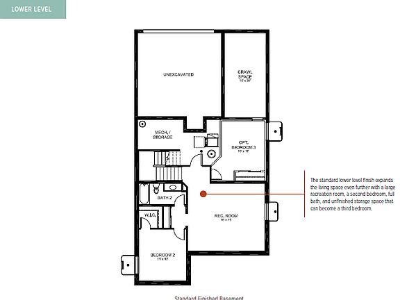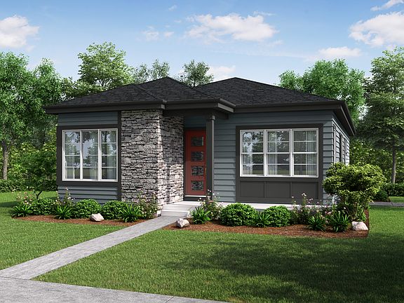 This contemporary Ranch plan features a convenient Owners Suite on the main level with attached owners spa. Choose an upgraded shower with dual shower heads and double doors, or the 5 piece option with contemporary free standing soaking tub. Tucked at the back of the home is the powder bath, laundry and private owners entry. An expansive covered front porch sits at the front of the home with large windows boarding the living room area. The basement comes finished with an additional bedroom, bathroom and rec room space.