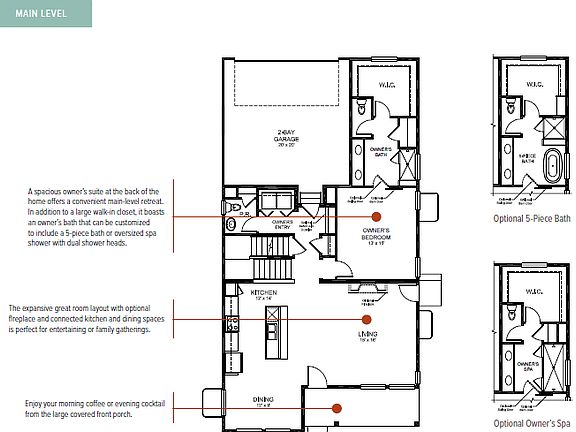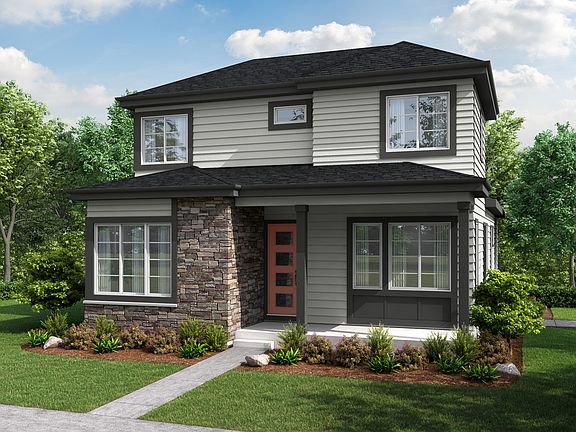 This main floor owner's plan is perfect for those looking for main floor living with a little extra room for children or guests. The Owner's Suite is tucked in the back of the home for privacy with convenient access to the laundry space and owners entry. Attached to this suite is an expansive Owners Spa where you can choose an upgraded walk in shower with dual shower heads and double doors, or the 5 piece option with contemporary free standing oval soaking tub. Upstairs holds two additional bedrooms with a shared bath. Expand to the 975 sq ft basement for even more space, or choose the option 593 sq ft finished basement.
