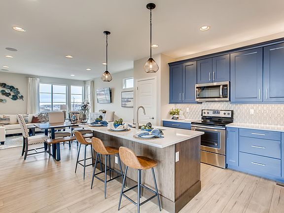 With a spacious porch leading to the private entry and a private covered patio, you'll be able to enjoy Colorado's 360 days of sunshine. With a living room, coat closet and powder room at the front of the home and kitchen just beyond, this plan is open and airy with plenty of space to host your friends. And when things start to wind down, a serene owners suite with large en-suite bathroom awaits. There is plenty of room for guests in the two secondary bedrooms with a full bath and a convenient laundry room. Expand the upstairs living with the option for a study, loft, or fourth bedroom. For an even bigger crew, move to the 670 sq. ft unfinished basement with optional 560 finished sq. ft. (includes rec room, bedroom, bathroom and unfinished storage).