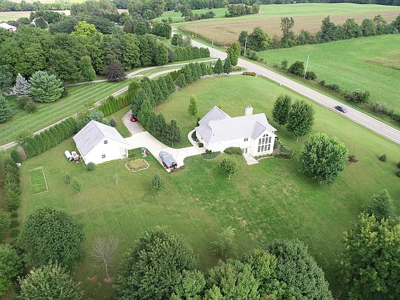 Stunning ranch on 4.57 acres located minutes from the Honda plant! First floor features 2 bedrooms (including an oversized master), 2 full bathrooms, laundry room, kitchen with eat-in and a family room leading to a staircase and two-stories of scenic windows. Lower level includes a den with walkout to patio, a second fireplace and finished plumbing for a wet bar. Also located on the lower level are 2 more spacious bedrooms, a full bath, utility room and hookups for a second laundry area. Radon mitigation and security system already in place. Propane tank just filled. Outside, find a wrap-around porch with professional landscaping and a long, tree-lined private drive. Includes attached 1-car garage and detached 3-car garage with electric.