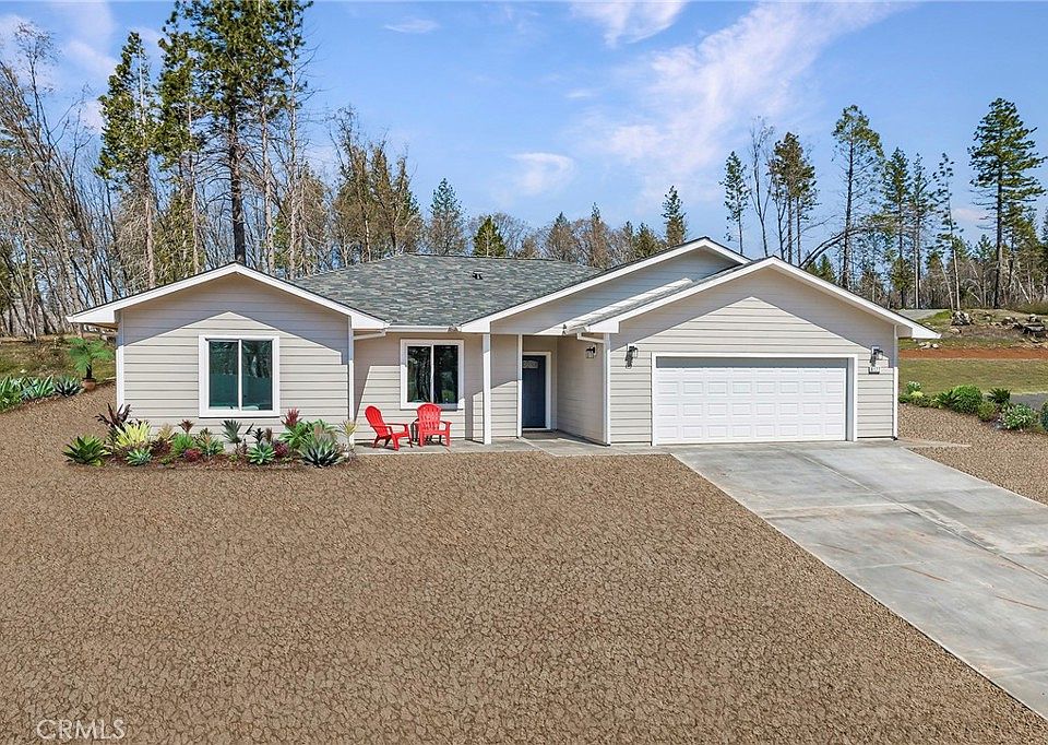 This lovely 3 bedroom, 2 bath home has beautiful views to the Butte Creek Canyon bluffs and down to the valley from the large picture windows in the dining room & kitchen. A great open floor plan with vaulted ceilings, lots of cabinet and counter space in the kitchen as well as a big island with countertop seating that flows to the dining and living rooms with a sliding glass door to the private back yard. Check out the beautiful Quartz counters, gas stove/oven, lots of recessed lighting and attractive drop lights over the kitchen island/bar counter. The main bedroom offers a walk-in closet, dual sinks & walk-in shower with stylish quartz shower surrounds & countertops. The split bedroom floor plan also offers lots of privacy with the 2 guest rooms, full guest bath and inside laundry room on the opposite side of the home from the master suite. With a welcoming front porch and a modern open floor plan, this home doesn't disappoint. Check out the attached 2-car garage with an electric vehicle hook-up prewired and of course, an automatic garage door opener so you can pull right in and stay out of the weather, plus a large yard and plenty of sunshine for gardening! Looking for that perfect combination of home & location? This is your chance to be in this fantastic cul-de-sac location in lower Magalia that is just about a mile and half to the Magalia Community Center and Disc Golf Course with a paved walking trail and open space, the grocery store, multiple shopping options, post office and dining! Plus, it is a quick and easy commute down Skyway to Paradise & Chico. How about fishing & water sports and outdoor adventures? It is a short drive to Paradise Lake, DeSabla Lake, Lake Oroville Marina or the Feather River! Enjoy the benefits of being in the Paradise Pines Property Owners Association as well. You are only a short drive the clubhouse with association amenities including the clubhouse with meeting rooms & library, 2 event centers with full kitchens, full bar & lounge at clubhouse, tennis courts, bocce ball court, children's playground, hiking trails, swimming pool & spa and so much more!. Enjoy small town living with all the conveniences while still getting that peaceful setting in the mountains listening to the birds sing and watching the deer move through your neighborhood!