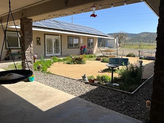 Such a great opportunity to settle down in the country on 5 acres! With just under 3600 square feet and 6 bedrooms, 3 full baths this home is made for living the fun life. A separate living room features a vaulted ceiling, free standing fireplace open and airy space. Plus, a huge family room is perfect for many uses. A light and bright kitchen includes white subway tile, granite, island and stainless appliances. You will love the huge pantry that can hold everything you need. The master is located down the long hallway and is quiet & private. The house wraps around a huge rear patio and courtyard style outdoor space. The 5 acres include pastures wire fenced for horses or other critters, a small barn or workshop. Don't miss previewing this one of a kind home!