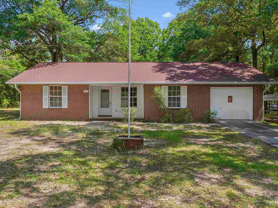 Looking for quiet country living? This 3 bedroom, 2 bath house sits on a wooded acre lot not far from NAS Whiting Field. Tons of privacy while being minutes from the shopping and restaurants of Milton! Open Floor Plan with Spilt bedroom design. Fenced in area in the back and a shed in the back of the property. This home also has a one car garage with an extra carport. The roof was replaced in 2020. This home needs some cosmetic updating and being sold AS IS.