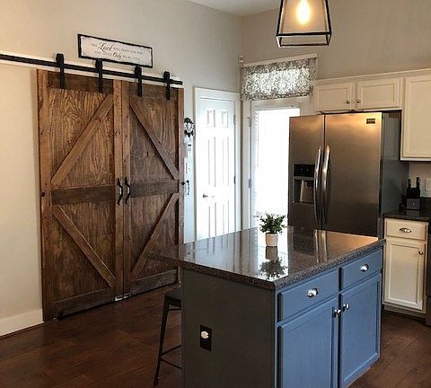 This beautiful home in the Clubview section of Letson Farms features 10 foot ceilings throughout and is move in ready! See through fireplace located in the spacious living room and kitchen with breakfast bar! You will love the character & convenience of open concept dining while entertaining family and friends! The kitchen also features stainless steel appliances, custom made barn door for the huge laundry closet, a large pantry and lots of cabinets and countertop space. Beautiful engineered hardwood floors are featured in the living room area, kitchen and hallways. Large master suite with a walk-in in closet, custom barn door, master bath with jetted garden tub, separate shower & double sink vanity. The detached two car garage/man cave features a work bench area, lots of shelving for storage and a huge loft over the garage for a future bonus room! Letson Fams features a clubhouse, swimming pool, tennis court, sidewalks and lake area! Close to I459, schools, shopping & churches!