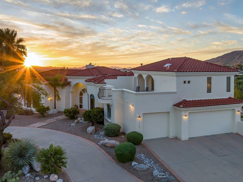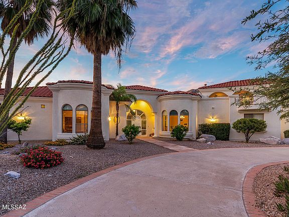 A remarkable find! Perched on a ridge top in a gated enclave of 13 homes with postcard-perfect views. We. Are. Not. Exaggerating...views in every direction; mountain, sunrise, sunset, desert, city lights, floor-to-ceiling, rooftop deck, you name it. Enjoy the best of Tucson outdoor living, and al-fresco dining under the expansive wrap-around covered patio that includes a built-in bar, BBQ, and sparkling spa. Inside offers an open and airy layout that has been meticulously maintained. Soaring ceilings, travertine flooring, and an abundance of natural light. The gourmet, eat-in kitchen is perfect for your inner chef. Separate living upstairs for friends and family to stay. This home is an entertainers delight! Minutes from grocers, dining, hiking, biking, golf, and more...