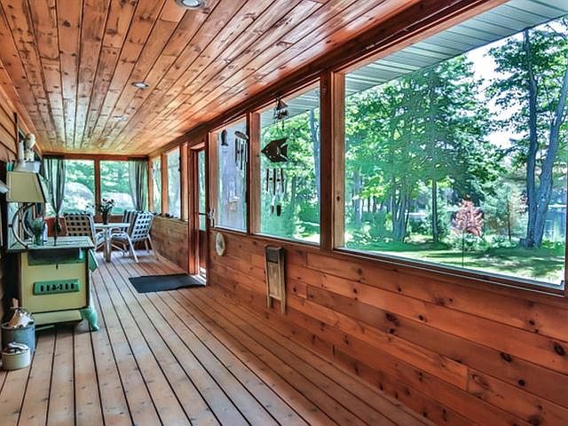 CHICKAREE LAKE HOME & GARAGE- Peaceful lake living at it's finest! This 2,000+ sqft home sits on the quiet shores of Chickaree Lake, a quiet lake located off Hwy 70 W just outside of Eagle River. Built for comfort & convenience, the main level features an open concept kitchen/dining/living area featuring a toasty stone gas fireplace for chilly Northwoods nights. Connected to the living room are patio doors leading to the enormous enclosed porch, then the open sun deck w/ built-in grill overlooking the lake. The Master Bedroom & laundry room are also on the main level while the downstairs houses the second bedroom & bath, as well as a spacious family room rounded out w/ a wet bar. Sitting on 1.46 acres w/ 120' frontage complete w/ a pier, this property also comes w/ an oversized 4 car garage. The 2-car enclosed portion is heated while the 2-space drive under portion is perfectly suited for the extra toys! Everything you need & more, comfortable lake living is in reach w/ this home!