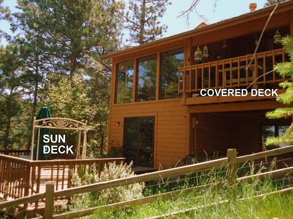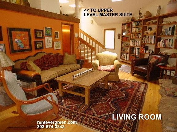 COMPLETELY FURNISHED HOME in a peaceful setting, mountain style with vaulted ceilings, hardwood flooring, stone entry, moss rock fireplace, and 3 decks. 9 MONTH LEASE through May 2020. 3 Bedrooms and 2.5 baths within 2.302 Square Feet. The entire 736 sq. ft upper level is master suite complete with private deck, walk in shower, and spacious main area. Updated kitchen with gas range, Corian counters, and bar seating. Adjacent dining area with floor to ceiling windows provides a bird's eye view of forest and her inhabitants. Large covered deck expands the living space for shade and during inclement weather (Evergreen averages 300 days of sunshine annually). Skylights and abundant glass throughout. Lots of built-in bookshelves for the librarian in you. Cozy and efficient natural gas hot water baseboard heat. Great location on a quiet county maintained road just 5 minutes from town. 2 - car attached garage. Pet possible on a case by case basis. Good Credit (675+ FICO score) and verifiable income required. SHOWING NOW BY APPOINTMENT. 9 Month Lease through May 2020. Tenant pays natural gas, electric, garbage removal. Well Water and Septic system provided.