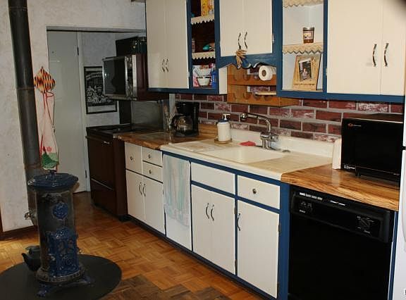 with wood / coal stove and a half bath. Upstairs, you’ll find 2 bedrooms (or