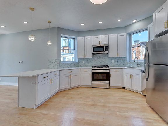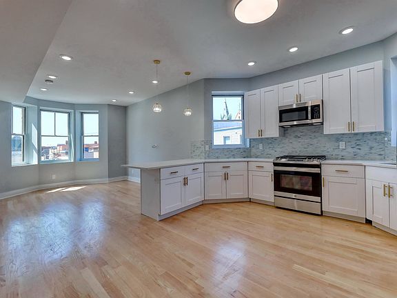 Beautifully Renovated-Spacious 4 Bedroom Unit! 4 bedrooms, 2 full custom bathrooms and on the second floor! A commuter's dream! Conveniently located minutes from NYC, public transportation, PATH train, shops and restaurants. This sun filled unit features an open floor plan perfect for entertaining guests in the large living room/ kitchen combo. Unit boasts approximately 10 ft ceilings, brand new gleaming oak hardwood floors throughout, custom white kitchen cabinets with leathered granite peninsula, stainless steel appliances, in unit washer/dryer and much more! Water, Landscaping and Snow Removal Included! A must See!