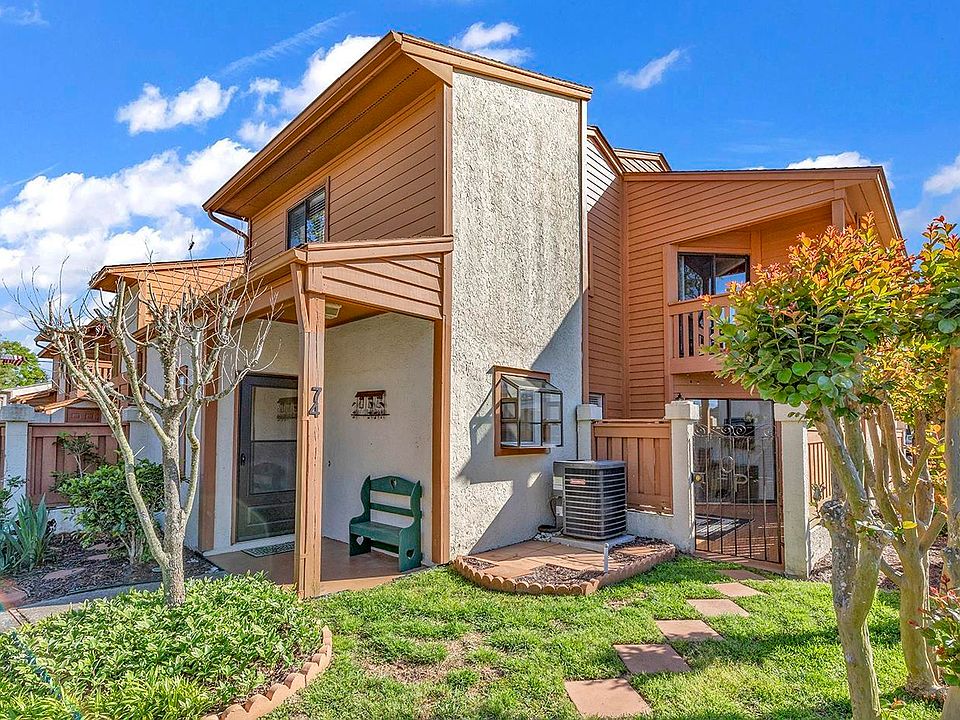 Welcome to Ocean Pines located East of 17 Business, just a 2 minute ride to the sandy shore. This complex is tidily landscaped and provides ample parking, outdoor swimming pool and flexible pickle ball/tennis court. Approaching this spacious end unit take note of the quaint sitting space allowed near the entrance and privately on the right of the home. Don't be mistaken at the entrance, there is an ultra convenient half bath and broad bright hallway that leads to the gleaming U shaped kitchen accessorized with new white appliances. Designated dinning area illuminates into the expansive living/sitting room adorned with new ceiling fan and LVP floors. Atop the stairway and directly to the left is the stacked washer dryer closet, Primary bedroom with an abundant closet and sliding doors that lead to a private balcony. The second floor additionally provides the primary bathroom, secondary bedroom, vaulted ceilings and the new LVP floors. Just bring a tooth brush as this home comes fully furnished. Close to great shopping and many dinning options. You get your pick of the newly opened Surfside Beach pier or the lively Garden City pier as the home sits half the distance to both.