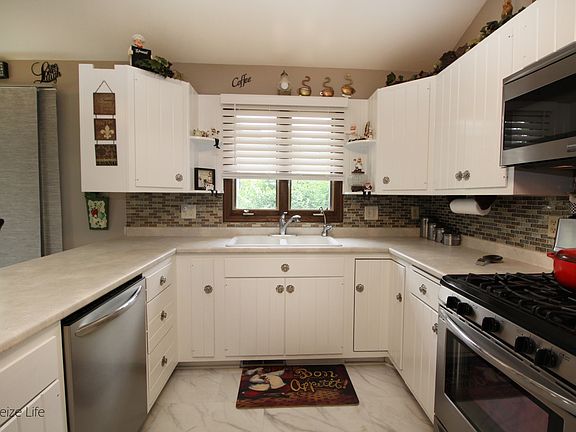 Excellent starter/retirement home! Located on quiet dead end street,these 3 bedroom, 1 1/2 bath ranch home is move-in ready! Pride of ownership evident both inside and out! Built in 1979, but everything has been replaced! Cathedral ceiling in spacious living room~U-shaped kitchen has adjacent eat in area with patio doors to 2 tiered deck~ laundry 1st fl 4 ft. crawl has concrete floor. Yes the property is in the flood plain, however, never a water problem..never water in crawl. The irregular 1/3 acre lot has mature landscaping, numerous flower beds, a storage shed, and large deck! Truly a home you don't want to miss! heater in garage does not work, new flooring, fresh paint A must see call today
