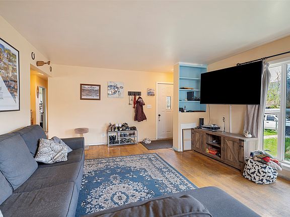 So much potential in this mid-century 3 bedroom 1 bath home with a full unfinished basement. Sitting on almost a quarter acre in a quiet neighborhood, this home is close to parks, schools, restaurants and more. The large yard is fully fenced front and back with grass, trees, firepit, and peekaboo mountain views. Original hardwood floors, built-in bookcase and hall storage, good-sized kitchen, large windows in living and dining areas, room to expand the finished space into the basement...just needs some TLC and vision to continue the updating and restoration started by current owners.