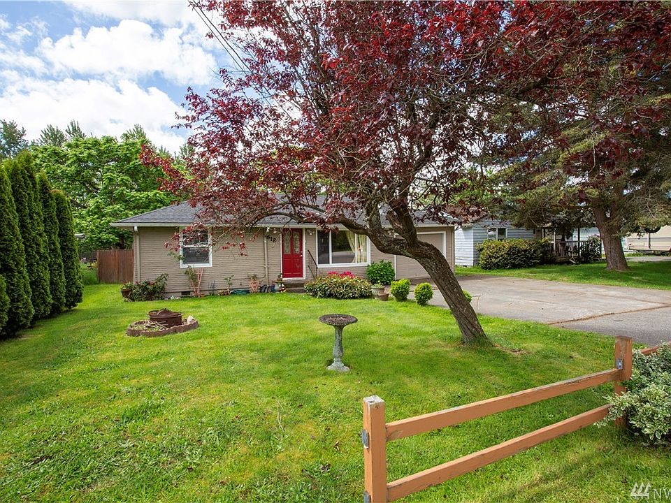 Fall in love with this charming rambler close to Boeing and the freeway.3 nice sized bedrooms & a 1 car garage. Great Floorplan! Laminate floors run throughout the living space, & hardwood floors just waiting to be finished are tucked away under the bedrooms and possibly the family room. Get cozy for movie night next to the wood stove. Enjoy the huge yard! Ready for play, gardening, or raising chickens and goats. Huge outbuilding in the back could be shop! Close to shopping! Priced to sell