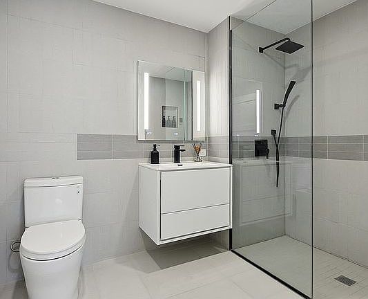 The immaculate spa-like bathrooms are outfitted with porcelain tiles imported from Spain, featuring radiant heated floors. All bathrooms feature recessed medicine cabinets with built-in LED lighting and clocks, and heated anti-fog mirrors to ensure a clear reflection at all times. In addition, the bathrooms feature dual flush toilets, recessed in-to frame shelves, and floating vanities with push-to-open storage drawers providing practical storage solutions.