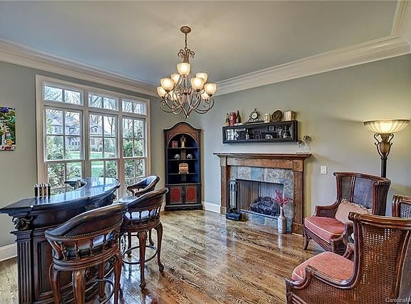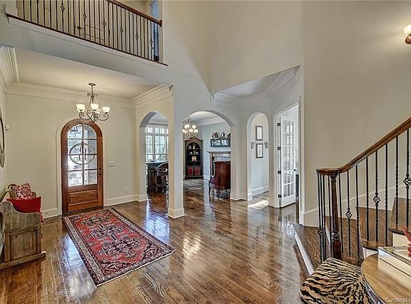 Custom built home located in the exquisite gated community of Chatelaine. Features include: full brick & stone, 3 car garage, covered back porch overlooking community pond, 6 bedrooms, 5.5 baths, 6446SF, master bedroom and secondary bedroom and office on main level, unfinished walk-up 3rd story, two hot water heaters, dual staircases, two fireplaces and heavy crown molding throughout, in-ground irrigation system in front and back,site finished hardwood floors on entire 1st floor and hardwoods on most of 2nd floor except for bedrooms and playroom/media room, ,gourmet kitchen with cherry stained cabinets, tile back splash, under cabinet lighting, huge center island, dual sinks, stainless steel appliances and granite counters,dramatic entry with circular staircase, great room w/coffered ceiling, gas fireplace w/stone accent, wet bar w/wine rack and sink. . Home designed to be elevator compatible. Most of interior freshly painted in 2018. Located Weddington School district!