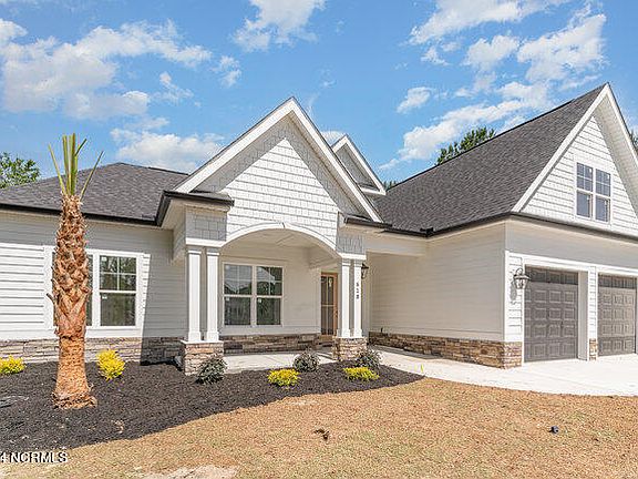 Welcome to the premium, gated, golf course community of Brunswick Plantation and this four bedroom, three and a half bathroom semi-custom home. This recently completed, 2676 heated square foot, 3705 total square foot home is move-in ready! The first floor features a split bedroom floorplan with open and inviting common areas. For special needs accessibility, the hallways are finished to 36 inches. The gourmet kitchen is finished with granite counters, under cabinet lighting, pantry, and stainless appliances. The dining room provides a view of the beautiful, wooded backyard and large covered porch. The kitchen overlooks the living room highlighted by the coffered ceilings. The master suite features a large bedroom, tray ceiling, dual walk-in closets, a zero-entry, custom tiled shower, and stand-alone tub. The first floor also includes two guest bedrooms that share a full bathroom, a half bathroom near the living room, and laundry room with granite counter. The fourth bedroom, located on the second floor, is a large suite with walk-in closet and full bathroom. The rear of the home is highlighted by a large, covered porch, perfect for grilling and enjoying the outdoors. The oversized, two-car garage provides plenty of space for parking and additional storage. This home will feature Hardie Plank siding, stone accent, and white and black finishes. Interior features include ceiling fans in the bedrooms, living room, and lanai and rounded interior corners. For peace of mind, this home will come with a home warranty. Brunswick Plantation is a gated community with security onsite. The amenity rich community includes the clubhouse, dining, fitness facility, community pool, tennis and pickleball courts, and more. There are too many features to list, call for details! Photos have been updated. Exterior photos of white home are of the actual home. Tan home is in same community with the same floor plan.