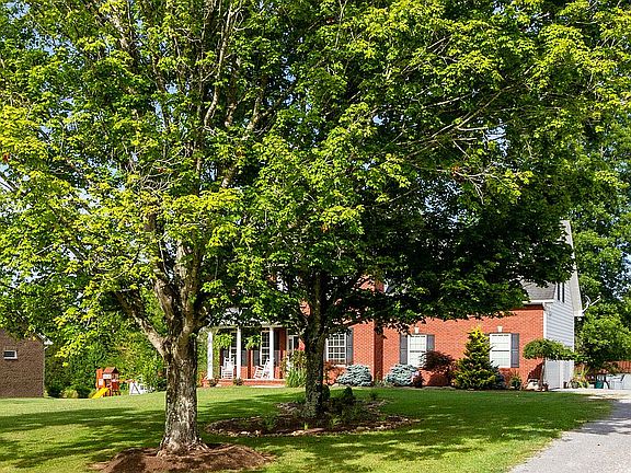 Country living on a lovely, unrestricted, spacious lot with mature trees. Enjoy modern conveniences of high speed internet, sewer, utility water and golf course views. I love the wood burning fireplace and covered back porch. Upgrades include crown molding throughout, wood custom cabinets, solid surface counters, formal dining, main level office/library/homeschool room, 3 car side-entry garage, large pantry, transom windows over the doors, hardwood steps, 2'' blinds, Sherwin Williams Sea Salt paint, spacious laundry room w/sink and mulched playground area. *Unrestricted * No HOA