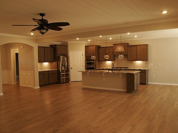 - Built-in Features, Ceiling Fan(s), Dining L, Eat-in Kitchen, Granite Counters, High Ceilings, Open Floorplan, Wired for Sound