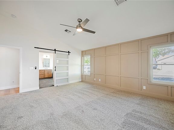 Beautiful 1-Story Home in the heart of Henderson, where modern elegance meets ultimate comfort. *3 Bed/2 Bath, perfectly designed for both relaxation and entertaining, complemented by a *3-car garage* for ample storage and convenience. New *LVP Flooring* that stretches throughout the open-concept living area, neutral paint palette that creates a warm & inviting atmosphere. *New Cabinets* adorned with designer fixtures, leathered quartzite countertop, custom backsplash that adds a touch of sophistication. Rear Family Room boasts soaring high ceilings and a custom fireplace, making it the perfect space to gather with loved ones. The home’s thoughtful layout places the *master bedroom* separately from the other bedrooms, offering a private retreat. The Modern accent wall adds a stylish touch, *master bathroom* luxurious slate flooring, a separate shower, and soaking tub—ideal for those serene evenings. Tranquil backyard, *covered patio*