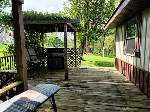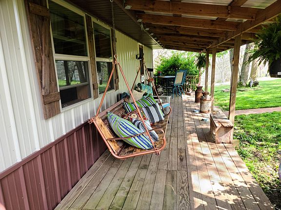 Nice open floor plan with covered front porch and hickory cabinets in the kitchen. There is a large detached garage that is insulated with a furnace, and hot and cold water. On the back of the garage is an addition with a chicken coup and stall for a horse or a few cattle. There is also an inground storm shelter. Property has a year round spring and lots of wildlife.