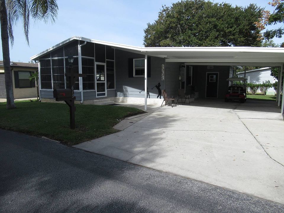 Lot#618 ;2 bedroom ; 2 bathroom ; 864 sq.ft. ; $80,000 This is it! This is the diamond in the rough, this home is updated inside and out. Kitchen has newer appliances, freshly painted cabinets nice counter tops. The living area is beautifully furnished and has a large mounted T.V. there is a sliding glass door to a front Florida room also nicely furnished. There are two bedrooms and two bathrooms, both bathrooms have been updated. This home has a shed which doubles as a laundry room with a newer washer and dryer. The home has a lani screened in with vinyl windows. Double wide driveway and carport. HVAC is 1 yr 1/2 old . Come explore your new community. Great House, Great Community..