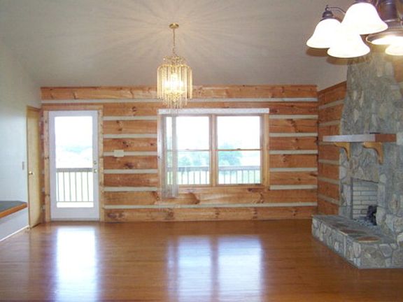 Log cabin within minutes of Jefferson with long-range views! Main level features spacious and bright great room with vaulted ceiling, wood flooring, stone fireplace (gas logs), kitchen island and several doors to access deck; master bedroom with private bath; 2 additional bedrooms and full bath. Full walk-out basement offers plenty of room to expand and includes a 3rd full bath already finished. Enjoy wrap-around deck covered on the front and open on the side. Suitable for full-time living, vacation home or vacation rental.
