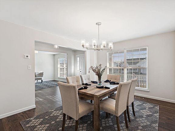This McBride-built 2 Sty features light-filled rooms with neutral interiors, full-height windows & wide plank flooring that extends throughout the main floor. Wide covered porch entrance leads to gracious entry foyer, formal living & dining rooms—perfect for entertaining—and spacious family room with wall of windows. Designer kitchen with 42” white Shaker cabinetry, quartz countertops, stainless steel appliances & 5 ½’ x 5’ center island adjoins breakfast room with sliding glass door that opens to fenced backyard. The master bedroom suite offers an appealing retreat with walk-in closet & luxury bath. 3 Generous-sized additional bedrooms & hall full bath complete the 2nd floor living quarters. Neighborhood community with nature trails with 3 trailheads & abundant green space. Conveniently located within walking distance of Deer Ridge Park & Duello Elementary with easy access to Hwys 40 & 70. Award-winning Wentzville School district.