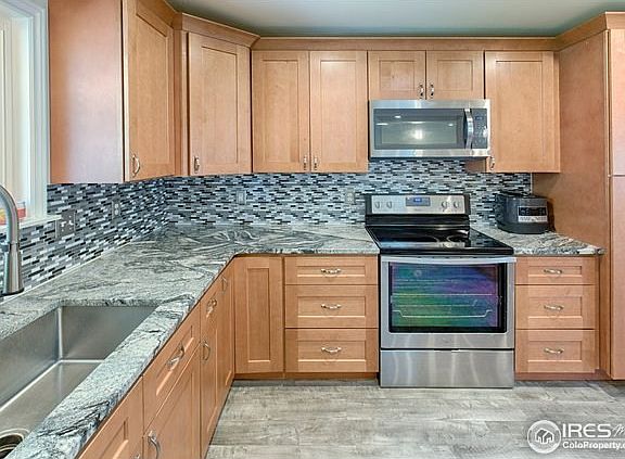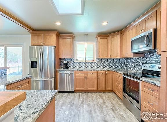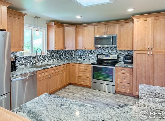 HOME SWEET HOME! The mature maple in the front yard invites you to call this house a home. This move-in ready 4 bed 3 bath features a large modern kitchen, granite counter tops, crown molding, skylights, updates throughout, covered patio, privacy fenced back yard & new storage shed. You'll find 3 Bedrooms on the upper level including the master bedroom & bath. On the lower level cozy up to the wood burning fireplace with an additional bedroom & bath. Unfinished space in the basement leaves room for imagination.