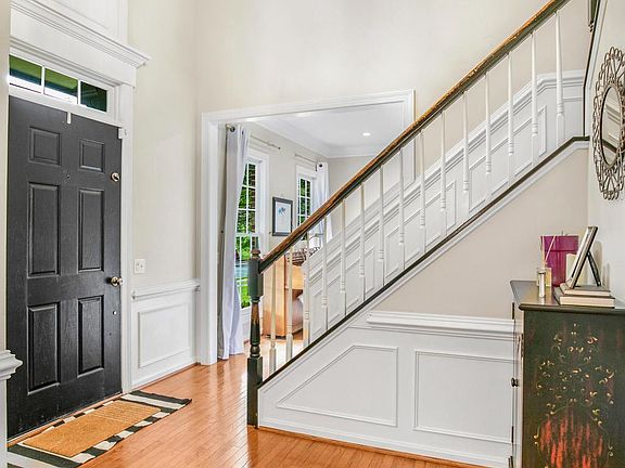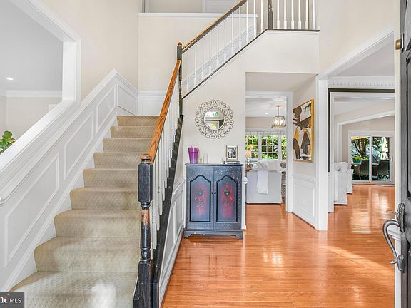 Welcome to this beautifully maintained home in the highly sought-after Woodlea Manor neighborhood! Situated on a peaceful, tree-lined cul-de-sac, this brick-front property offers serene, beautifully landscaped surroundings. Step into the inviting foyer, featuring hardwood floors, wainscoting, and crown molding, all set against a neutral color palette that flows throughout the home. The light-filled living and dining rooms are perfect for entertaining, adorned with elegant ornate moldings and flanking the foyer. At the heart of the home, the updated, open-concept kitchen is a bright and welcoming space with lovely views of the backyard. Enjoy cooking with updated countertops, a large center island, stainless steel appliances, recessed lighting, and a butler’s pantry.The adjacent sliding glass doors lead to a rear deck that overlooks lush gardens and mature trees, offering a peaceful retreat throughout the changing seasons. Next to the kitchen is a spacious family room with a wall of windows that frame views of the trees, along with a cozy two-sided brick fireplace adorned with white molding. French doors lead to a private office, complete with built-ins surrounding the fireplace and more crown molding. A mudroom with a utility sink, closet, along with a half bath, complete the main level. Upstairs, the expansive primary suite is a tranquil escape with a tray ceiling and a warm color palette. The en-suite bathroom includes a soaking tub, double vanities, a separate shower, and a spacious walk-in closet. Three additional generously sized bedrooms and a large hall bathroom complete the upper level. The fully finished walkup lower level offers even more living space with a rec room perfect for family movie nights, a Den which can be used as a guest bedroom with a walk-in closet, an additional finished room ideal for a home office or playroom, a full bath, and plenty of storage. The home also includes a two-car garage equipped with an EV charger. Woodlea Manor offers outstanding community amenities, including a pool, tennis and basketball courts, tot lots, and miles of walking trails through nearby parkland. The HOA hosts various events throughout the year, making this an active and welcoming neighborhood. Located in charming Leesburg, this home is just moments from historic downtown’s restaurants, shopping, and leisure options. With easy access to Route 7, Route 28, Dulles Greenway, and the Silver Line Metro, commuting is a breeze. Don’t miss this exceptional opportunity!