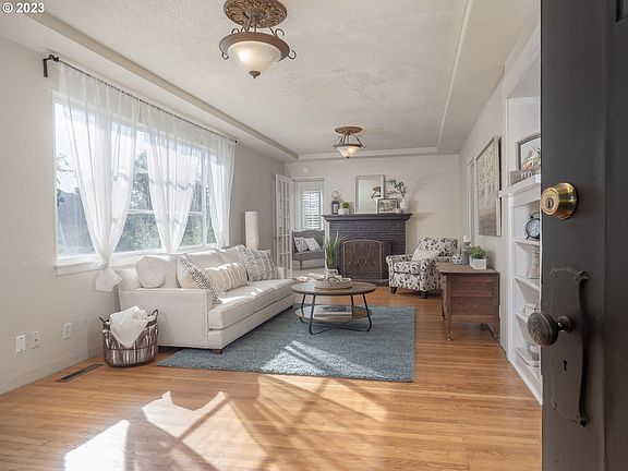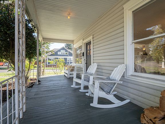 Adorable 1907 Victorian home, just one block away from Newberg's charming downtown. As you approach this enchanting property, you'll be greeted by the spacious front porch. Step inside, and you'll immediately be captivated by the warmth of the hardwood floors that run throughout the main living areas. The wood-burning fireplace invites you to cozy up on chilly evenings, while the back porch has been thoughtfully converted into a sunroom, ideal for a home office, reading nook, or a tranquil space to soak up the sun. Natural light flows generously through numerous windows, creating a bright and cheerful ambiance. The uniquely shaped bedrooms add to the home's character, with the main bedroom boasting its own balcony. Experience the enduring allure of a vintage home, combined with the convenience of a central location where boutique shops, delightful dining and renowned tasting rooms await your exploration. Don't miss this opportunity to own a piece of history and make this home your own!