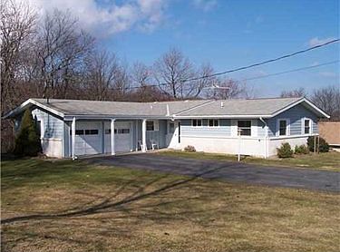 Delightful country setting for this spacious ranch. Nicely sized rooms, living & dining rooms have vaulted ceilings with 2 sliders leading to covered patio. Updated baths. Also included are two commercial type garages 45x35 block garage with 10 ft door and 42x40 garage with 8 ft door. Ideal property for auto restoration, repairs or simply a great place for storing all those toys.