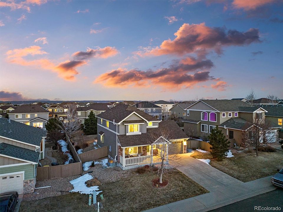 This meticulously maintained home is a true gem, features 4 bedrooms and 3 1/2 bathrooms across 2,419 finished square feet of living space. Situated on a .23 acre lot in the desirable Castlewood Ranch neighborhood of Castle Rock, CO! This home offers the perfect blend of comfort and convenience. As you enter the home, you'll be greeted by a warm and inviting atmosphere, with natural light flooding in from the many windows throughout. Plantation shutters, hardwood floors. The main level features a spacious living room, formal dining area, family room with cozy fireplace and a gourmet kitchen with center island, stainless steel appliances, breakfast nook, pantry and mud/laundry room. Upstairs, you'll find a luxurious master suite with a private bathroom and ample closet space, as well as three additional bedrooms and a full bathroom. The finished basement offers even more space to spread out, with a large recreation room, ¾ bath, utility/storage room and large crawl space. Outside, the large backyard provides plenty of room for outdoor entertaining and relaxation, with a patio area and mature landscaping. The home also features a 2-car attached garage. Located in the sought-after Castlewood Ranch neighborhood of Castle Rock, this home offers easy access to schools, shopping and outdoor recreation and downtown Castle Rock is just 10 minutes away! This home, with its exceptional condition, prime location, and ample space, is turn-key ready!