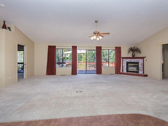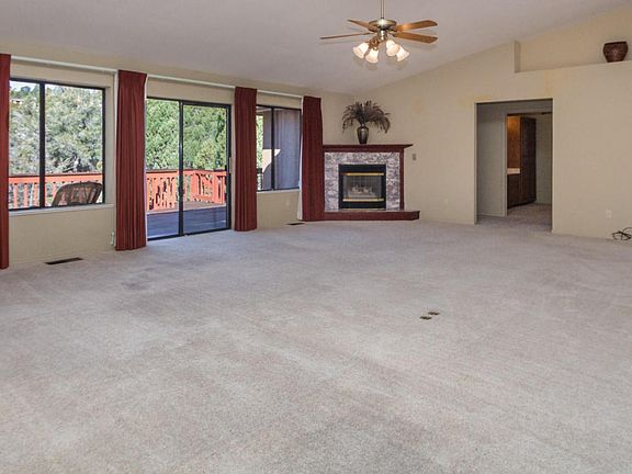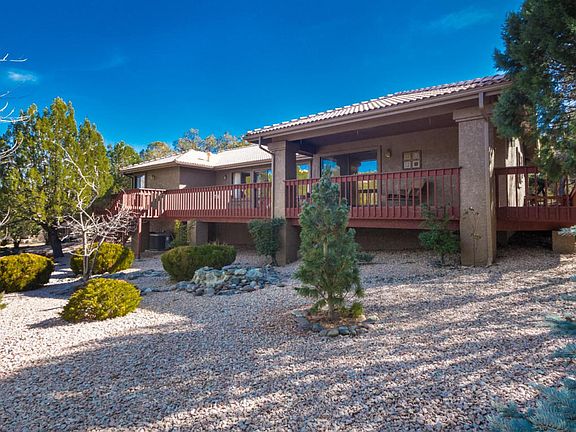 Meander south along Lee Blvd leaving the bustle of Highway 69 behind and enter the rolling hills of the pine forest in the Ranch at Prescott. Turning onto a cul de sac on Heather Brook Circle you find a wonderfully inviting single level home snuggled in mature alligator junipers and pines. A tree shaded private courtyard and covered entry portico welcomes you to this stair free home designed for accessibility. Entering into the tiled foyer you are wowed by the bright, open Great Room with a wall of windows offering magnificent views of mature native pines, junipers, and the mountain ridge beyond. The Great Room is the heart of the home and lounging is encouraged! Bathed in natural light it offers a thermostat controlled gas fireplace for coziness, vaulted ceilings for spaciousness,