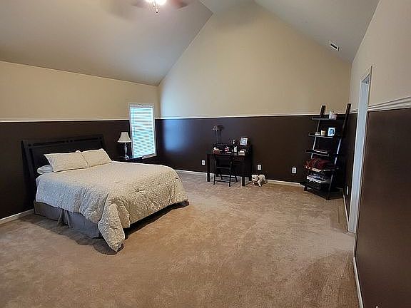 5 bedrooms, 3 full bathrooms in a quiet, 24 home subdivision. Hardwood floors, granite counters, stainless steel appliances, open concept kitchen/great room with fireplace and 2-story vaulted ceilings in great room and foyer. Formal dining room with coffered ceiling and a front living room. 1 bedroom and full bath downstairs. Spacious master bedroom/bathroom with large walk-in closet, 3 large bedrooms and full bath upstairs. All upstairs is carpeted. 3-car garage with 2 entrances into house. Impeccably landscaped yard with mature trees, providing ample shade.