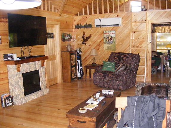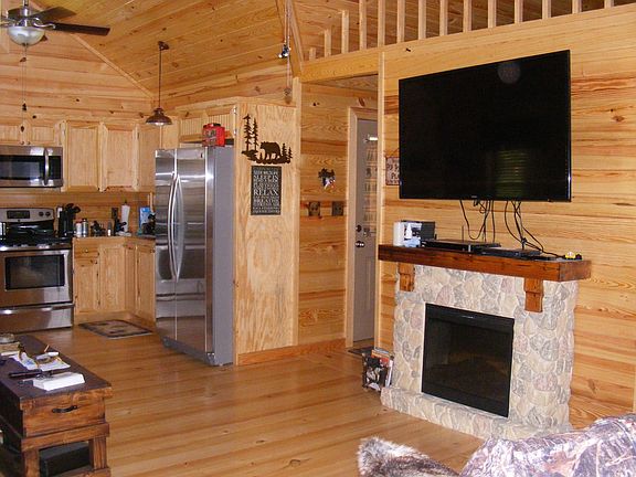 Have you been thinking about a vacation cabin, or weekend or a get away Cabin. Perhaps even a acreage with income potential. FOR SALE: A Log Cabin that has 2 bedrooms and a 2 larger sleeping lofts, 1 full bath, ductless central A/C, 2 septic tanks, perk tested, water well over 200+ feet deep. The cabin sits on 4 total acres. The log cabin sits on south 2 acres of 4 acre tract, and on north 2 acres there is another completely separate new septic tan with water and electric hook-ups for possible RV hook-up income or for your kids or relatives RVs. This is a one of a kind cabin in the Quachita Mountains. The 4 acres is between Mena and Mt. Ida in the Quachita National Forest. It is 1.7 miles off Hwy. 88 up a county road. Secluded up the mountain in the National Forest. The log cabin presently does have satellite TV, phone, and internet for connecting to the outside world. It has Metal double gates the opening is 32' which leads to a 22' wide driveway right down the middle of the 4 acres. This size opening was done so campers could easily make the turn onto the main drive and get to the hook-ups. The cabin and hookups could also be used as a very, very nice hunting camp with National Forest around you. Total square footage approximately 1898 sq. ft. total. which includes the cabin, sleeping lofts, porches, and two car Garage with locking roll down doors. Metal roof with 40 year warranty on cabin and garage. There is wood throughout the entire cabin there is no sheetrock. Wood is excellent for insulation. Home was completely blown with urethane foam walls, ceilings, and underneath home. I had it termite treated and have annual contract (transferable). I had area approximately 30' to 40' around cabin cleared and planted with deer and turkey plot food. Abundant wildlife is everywhere around you. I have planted 8 apple trees, and also have grape vines started. All fixtures in the cabin are top of the line Delta, Kohler and Hunter ceiling fans all have lifetime warranties. The first 5 months electricity bills average $47/month. Selling because of divorce the cabin is brand new construction finished May 1st 2016 asking $129,900 fully furnished: call 870-326-4553 or cell 337-540-4380 if interested or email. All the furniture in cabin was purchased in last 4 months. Non-assumable, No owner financing $129,900 This price is firm.